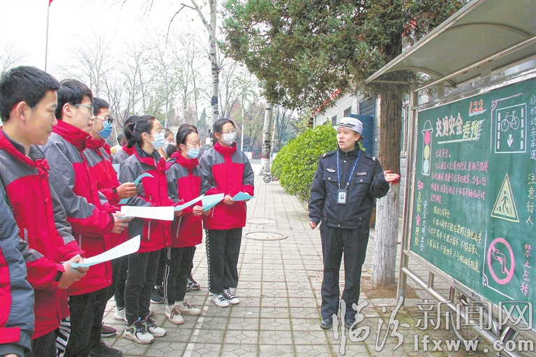 臨汾新聞網訊 在“122”全國交通安全日之際,侯馬市公安局交警大隊民警走進侯馬市第二中學,開展冬季交通安全進校園主題宣傳活動,進一步提升學生的交通安全意識。圖為民警近日在為學生們普及交通安全知識。