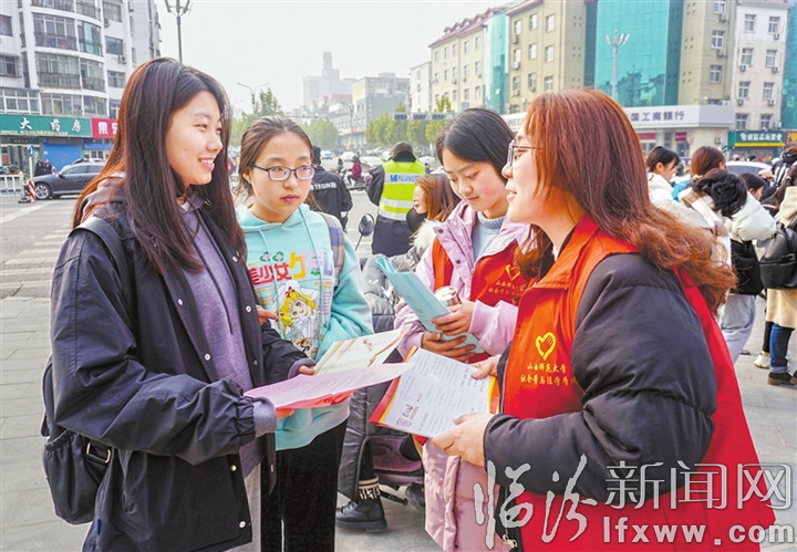 臨汾新聞網(wǎng)訊 第七個(gè)國(guó)家憲法日前夕,山西師范大學(xué)社會(huì)學(xué)與法學(xué)學(xué)院新世紀(jì)律師團(tuán)的八名志愿者,在市區(qū)五一西路開(kāi)展了“迎接國(guó)家憲法日 普法宣傳進(jìn)基層”活動(dòng)。圖為志愿者在街頭巷尾為市民講解新修訂的“民法典”。