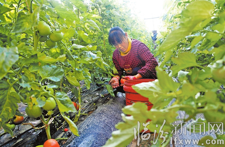 臨汾新聞網訊 12月13日,在襄汾縣永固鄉萬寧村的溫室大棚內,村民在對西紅柿進行管護與采摘。