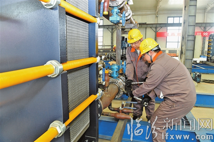 臨汾新聞網訊 12月17日,在山西三水能源股份有限公司節能機組項目生產現場,工人在調試設備。該公司位于臨汾甘亭產業孵化園區,是一家致力于供熱節能技術研發、設備生產的企業,其自主研發的綠色供熱新技術,利用電廠乏汽余熱,以廢治霾,長輸供熱,實現了經濟效益與生態效益“雙贏”。