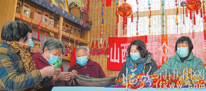 臨汾新聞網訊 1月23日,襄汾縣趙康紅紅傳統手工專業合作社社員,正圍坐在一起制作太平繡球飾品。近年來,該社利用農閑時節把村里的民間藝人集中起來,制作傳統手工藝品,讓村民足不出村就能掙到錢。