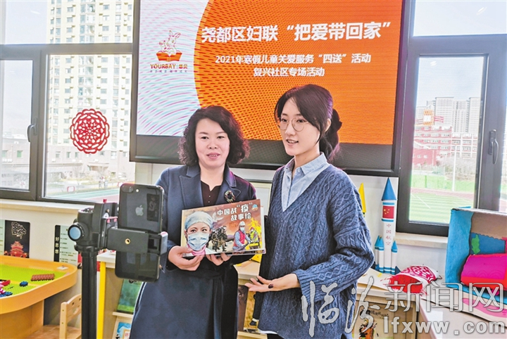 臨汾新聞網訊1月28日,堯都區婦聯在鼓樓西街辦事處復興社區舉行了“把愛帶回家”2021年寒假兒童關愛服務“四送”活動,讓兒童度過一個健康安全、溫暖幸福的寒假。圖為專家通過網絡直播向家長、兒童宣傳防疫小知識。