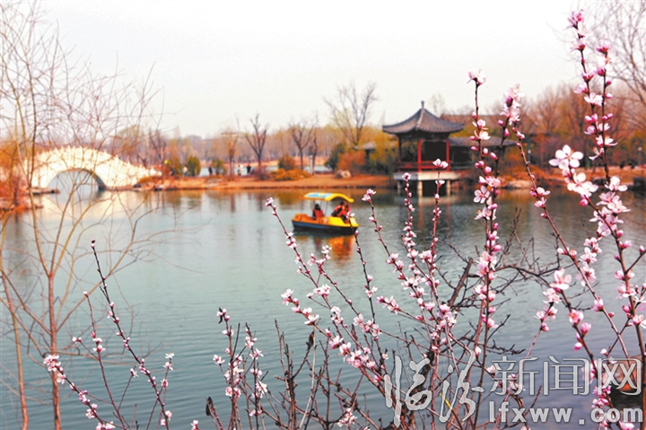 臨汾新聞網(wǎng)訊 春暖花開(kāi)時(shí)節(jié),市區(qū)澇洰河公園里的柳樹(shù)吐露新芽,桃花、杏花競(jìng)相綻放,滿園春色吸引了眾多游客前來(lái)踏青賞春。圖為3月7日,游人在澇洰河公園游覽。