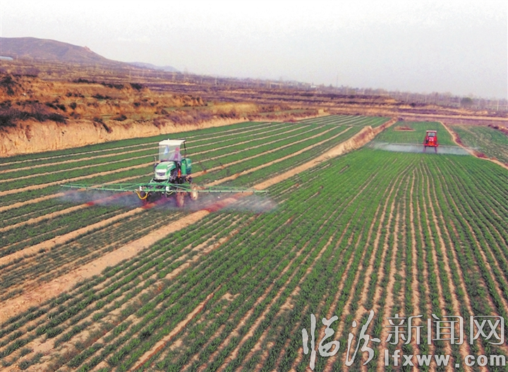 圖為翼城縣里砦鎮老官莊村民駕駛自走式植保機噴灑除草劑。