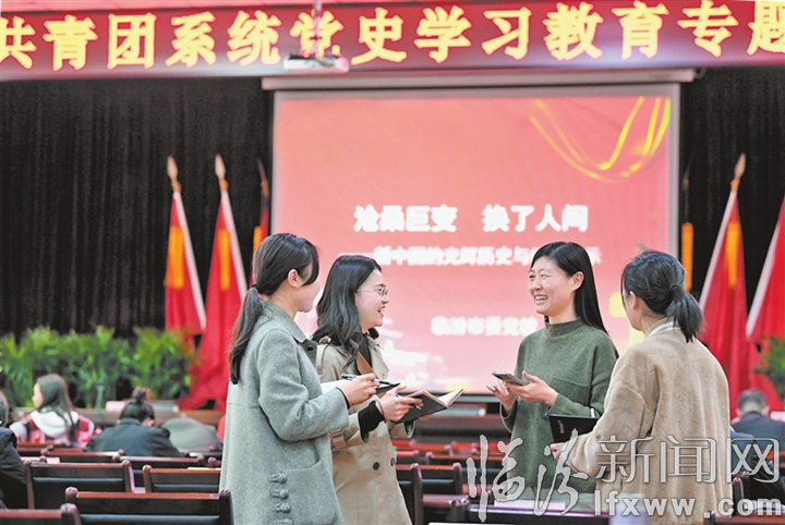 臨汾新聞網(wǎng)訊 3月22日至23日,共青團(tuán)臨汾市委對(duì)全市116名團(tuán)干部、少先隊(duì)輔導(dǎo)員及青年講師團(tuán)成員進(jìn)行了為期兩天的黨史學(xué)習(xí)教育專題培訓(xùn),旨在引導(dǎo)全市廣大青少年了解黨的光輝歷史、感悟黨的初心使命、領(lǐng)會(huì)黨的創(chuàng)新理論、體認(rèn)黨的精神譜系、傳承黨的紅色基因。圖為3月22日,在市委黨校參加學(xué)習(xí)的團(tuán)干部利用課間時(shí)間和授課老師進(jìn)行交流。