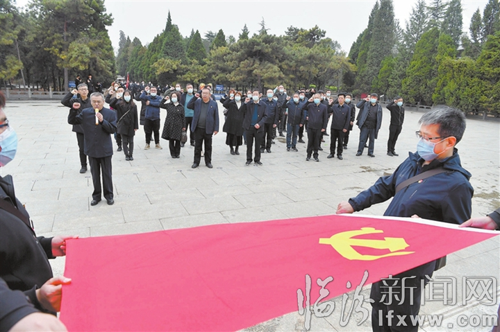 臨汾新聞網訊 為了緬懷革命先烈,繼承和發揚先烈的革命精神,進一步加強愛國主義教育,四月二日,臨汾日報社組織黨員干部及入黨積極分子前往臨汾烈士陵園舉行了祭掃活動。圖為黨員干部面對黨旗,重溫入黨誓詞。
