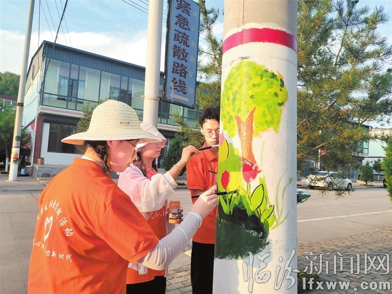 臨汾新聞網(wǎng)訊 7月30日,在鄉(xiāng)寧縣管頭鎮(zhèn),山西師范大學現(xiàn)代文理學院美術(shù)系的學生正在創(chuàng)作墻繪作品。該院暑期社會實踐活動開展以來,美術(shù)系的學生以鄉(xiāng)村振興為主題,遵循貼近實際、貼近生活、貼近群眾的服務(wù)原則,結(jié)合自身專業(yè)知識,修補墻繪,共創(chuàng)作34幅作品,為美麗鄉(xiāng)村建設(shè)增光添彩。