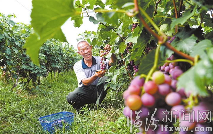 臨汾新聞網(wǎng)訊 9月6日,堯都區(qū)縣底鎮(zhèn)河里莊村村民逯爭氣在展示自家種植的葡萄,今年他家種植了4畝葡萄,收入3萬余元。近年來,該村大力發(fā)展葡萄種植,并采取“線上+線下”的方式進(jìn)行銷售,讓葡萄產(chǎn)業(yè)成為村民的致富產(chǎn)業(yè)。