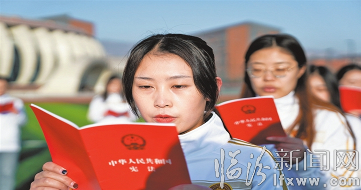 臨汾新聞網訊 為弘揚憲法精神,增強新時代大學生的憲法意識,12月2日,山西師范大學現代文理學院政法系黨支部組織政法系90余名學生誦讀憲法序言及正文,增強他們的法律意識,感悟憲法的重要性。 記者 趙 俊 攝