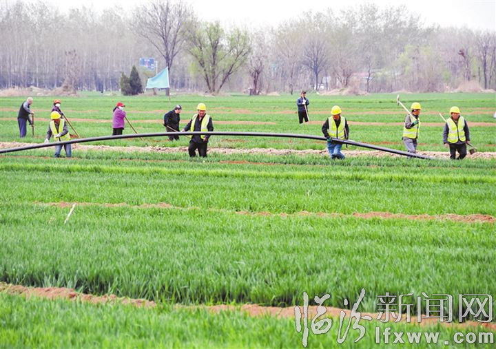 臨汾新聞網(wǎng)訊 4月2日,在翼城縣南梁鎮(zhèn)梁壁村高標(biāo)準(zhǔn)建設(shè)農(nóng)業(yè)生產(chǎn)基地,技術(shù)人員在安裝節(jié)水管道。該基地著力在“高效節(jié)水”上蹚出一條新路徑,通過(guò)智能管灌、智能?chē)姽唷⒅悄艿喂嗳?xiàng)高效節(jié)水措施,為農(nóng)業(yè)灌溉充分利用地表水、合理使用淺層水、嚴(yán)控地下水提供先例打好基礎(chǔ),確保糧食豐產(chǎn)增收。