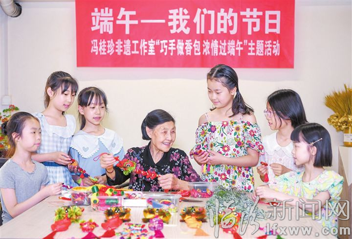 臨汾新聞網(wǎng)訊 5月29日,在大寧縣“虎頭香包”制作工藝非遺傳承人馮桂珍工作室,87歲的馮桂珍老人正指導(dǎo)小朋友們制作端午香包。當(dāng)日,主題為端午——我們的節(jié)日“巧手做香包 濃情過(guò)端午”活動(dòng)舉辦,通過(guò)制作香包,使孩子們感受濃濃的傳統(tǒng)文化氛圍。