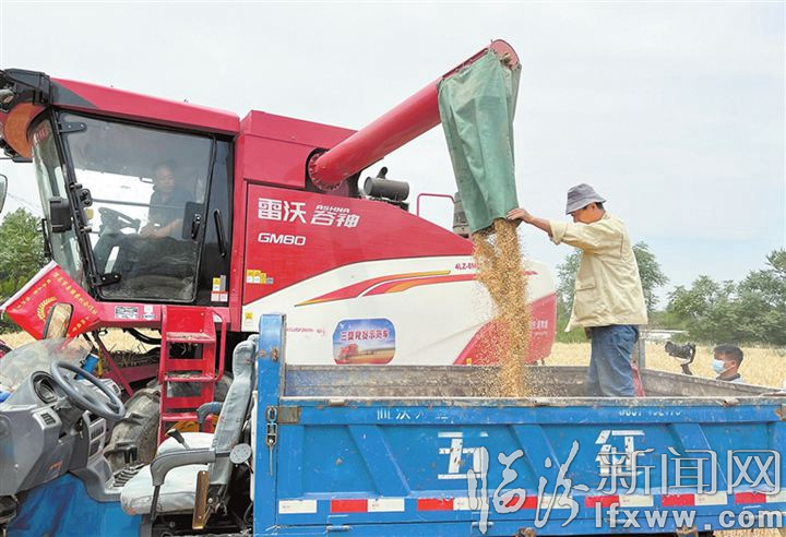 臨汾新聞網訊 5月31日,在侯馬市上馬街道辦事處斗龍溝村、隘口村,聯合收割機正在作業。