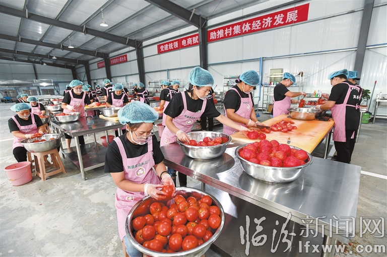 臨汾新聞網訊 8月2日,在浮山縣響水河鎮敦曹村敦盛食品加工有限公司,工作人員在生產車間加工西紅柿醬。敦曹村采取“村集體+公司+農戶”的運營模式,帶動62戶農民種植西紅柿200余畝,由公司牽頭與農戶簽訂收購合同,并為農戶提供技術指導和產銷“一條龍”服務,蹚出了一條產業富民的新路子。