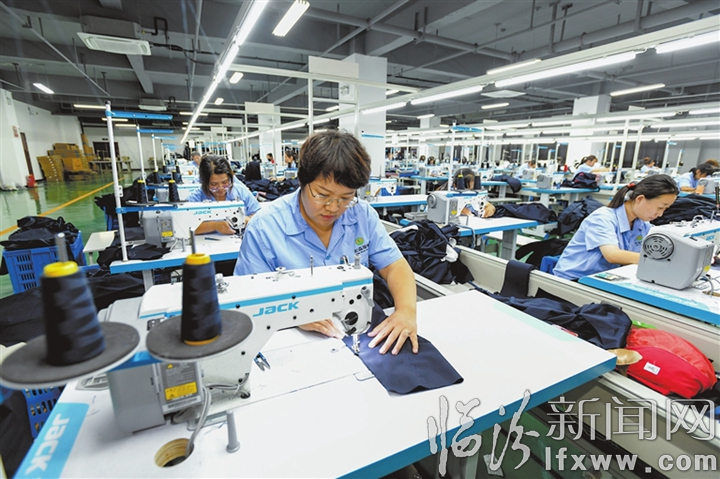 臨汾新聞網訊 8月19日,在臨汾經濟開發區甘亭工業園區,臨汾農村集體經濟宏淼服飾有限公司的工作人員在加工服裝。該公司通過盤活洪洞縣職業中學實訓基地閑置資產,進行服裝加工及勞保用品生產銷售,向社會提供就業崗位210余個,滿足了群眾就近就業需求。