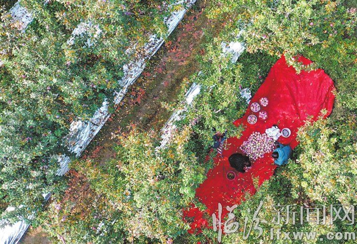 臨汾新聞網訊 當前正是蘋果采摘銷售季節,襄汾縣南賈鎮東劉村果農對成熟的蘋果開展采摘、分揀、裝箱、銷售作業,果園內外一派忙碌的勞動景象。