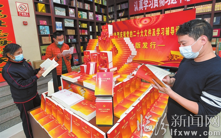 臨汾新聞網訊 11月14日,在臨汾市新華書店,讀者在認真閱讀黨的二十大文件及學習輔導讀物。黨的二十大文件及學習輔導讀物為廣大黨員干部群眾學習貫徹黨的二十大精神提供了權威、準確的讀本,為滿足社會各界的學習需求,臨汾市新華書店在醒目位置設立專柜展臺,開辟綠色通道,全力做好服務保障工作,為讀者閱讀、學習營造良好氛圍。