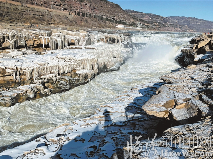 臨汾新聞網訊 近日,受持續降溫天氣帶來的寒潮影響,吉縣黃河壺口瀑布騰起的水霧瞬間結冰,在沿岸形成造型各異的冰柱,呈現“冰峰倒掛”景觀。