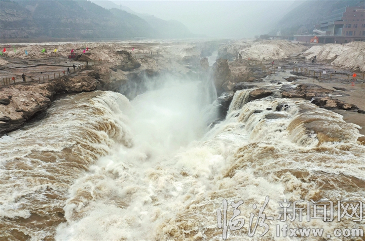 臨汾新聞網訊 2月12日,游客在吉縣黃河壺口瀑布游覽觀瀑(無人機照片)。近日,受氣溫回暖影響,吉縣黃河壺口瀑布冰消河開,再現奔騰咆哮的壯美景觀。受前段時間凌汛影響關閉了半個月的壺口瀑布景區,當天恢復對外開放。
