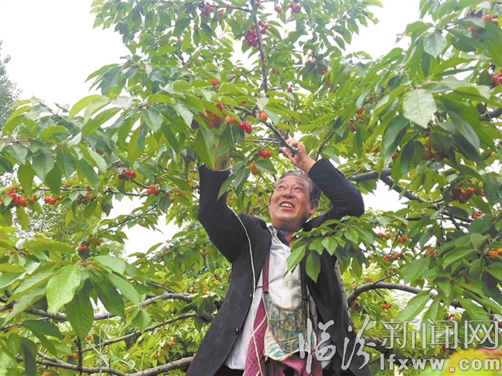 臨汾新聞網訊 近年來,大寧縣曲峨鎮依托良好的地理氣候條件和區位優勢,大力發展櫻桃產業,增加村級集體經濟收入,助力鄉村振興。圖為5月27日,曲峨鎮道教村村民房七恩正在采摘櫻桃。