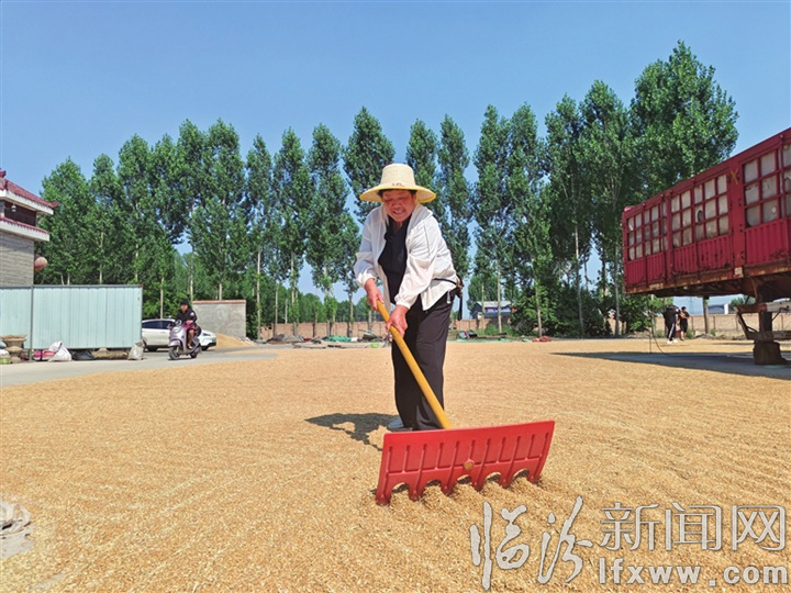 臨汾新聞網(wǎng)訊 6月14日,堯都區(qū)金殿鎮(zhèn)伍級(jí)村村民潘雪麗家的3.5畝小麥喜獲豐收,她正在家門(mén)口晾曬新收獲的小麥。