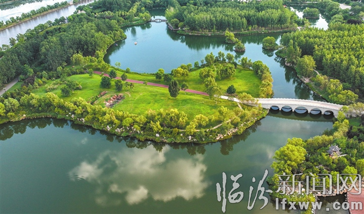 臨汾新聞網訊 8月16日,航拍鏡頭下的市區汾河文化生態景區濕地景觀。