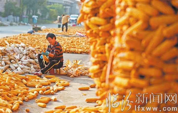 臨汾新聞網訊 金秋時節,我市各地農民搶抓晴好天氣,加緊對玉米進行收割、晾曬、儲藏等一系列作業,田間地頭、房前屋后到處都是忙碌的身影。圖為襄汾縣南辛店鄉無姨村村民在晾曬玉米。