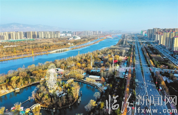 臨汾新聞網訊 近年來,我市堅持高位部署、高標要求、高頻調度,全力推進生態環保各項工作扎實開展,取得了明顯成效。圖為航拍鏡頭下的臨汾城區天朗氣清、街面整潔,汾河兩岸草木蔥蘢、景色優美。
