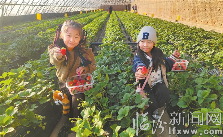 臨汾新聞網訊 入冬以來,我市諸多休閑采摘基地的大棚草莓長勢喜人,許多游客紛紛前往體驗采摘樂趣,開啟冬日里的“莓”好時光,在帶旺人氣的同時,也有效帶動村民增產增收,助力鄉村振興。圖為12月24日,在我市豐碩草莓種植示范基地,小朋友們在采摘草莓。