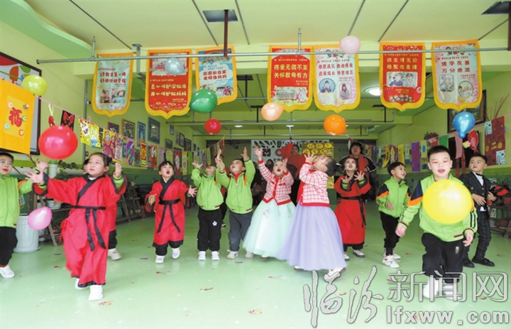 圖③:2023年12月29日,臨汾市梅軒幼兒園大班孩子們穿上節日盛裝,猜謎語、放氣球,歡歡喜喜迎接新年的到來。