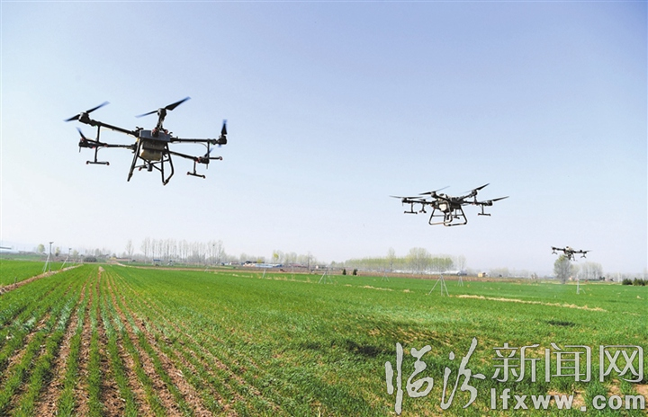 臨汾新聞網訊 眼下正值春管春護關鍵時期,翼城縣田間地頭滿滿的“科技范”,各種高科技、智能化農機具紛紛“上崗”大顯身手。圖為該縣南梁鎮白馬村的麥田里,數臺無人機正在噴灑葉面肥。