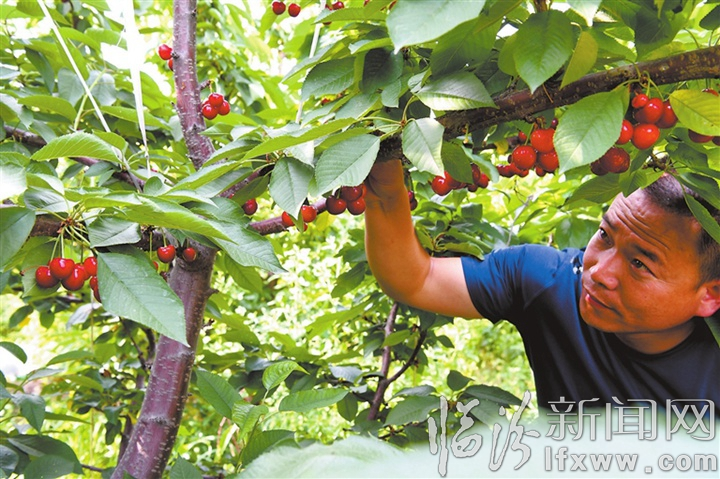 臨汾新聞網(wǎng)訊 日前,一名游客在位于翼城縣南唐鄉(xiāng)下陽村的櫻桃園內(nèi)采摘櫻桃。