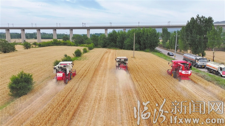 臨汾新聞網(wǎng)訊 5月28日下午,一臺(tái)臺(tái)小麥聯(lián)合收割機(jī)行駛在侯馬市上馬街道辦事處南張里村的金色麥浪中。當(dāng)日,侯馬夏收正式開(kāi)鐮。