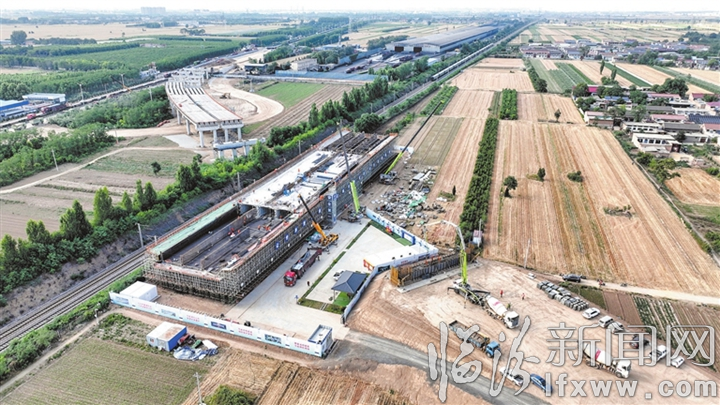臨汾新聞網訊 6月14日,在襄汾縣國道108線過境改線工程南同蒲鐵路跨線轉體立交橋建設現場,工人們正加緊施工作業。