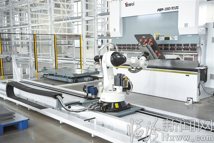 臨汾新聞網(wǎng)訊 近日,在臨汾明揚(yáng)上九智能電氣有限公司鈑金柔性加工生產(chǎn)線,智能機(jī)器人在進(jìn)行作業(yè)。