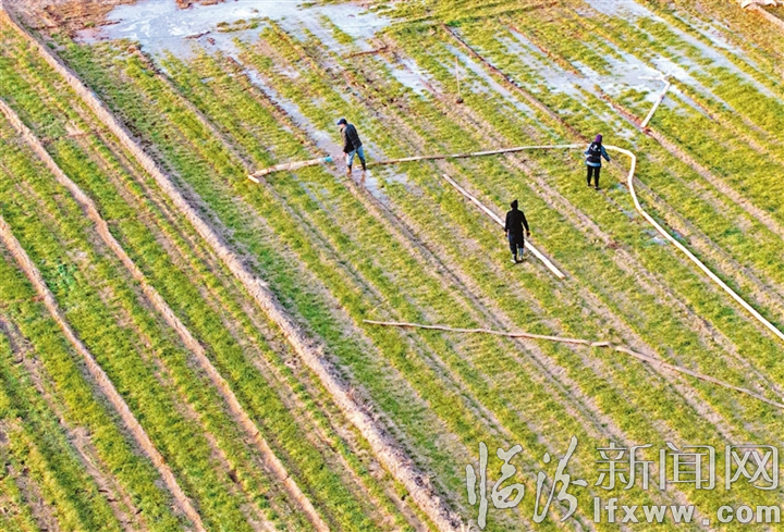 臨汾新聞網(wǎng)訊 2月17日,在襄汾縣新城鎮(zhèn)夏梁村,農(nóng)民對小麥進(jìn)行澆水作業(yè)。當(dāng)前,春耕春管進(jìn)入關(guān)鍵時(shí)期,當(dāng)?shù)剞r(nóng)民搶抓農(nóng)時(shí),加緊對麥田開展?jié)补唷⒆贩省⑺赏恋认盗写汗茏鳂I(yè),促進(jìn)小麥分蘗泛青,為夏糧豐收打好基礎(chǔ),田間地頭呈現(xiàn)一派人勤春早的繁忙景象。