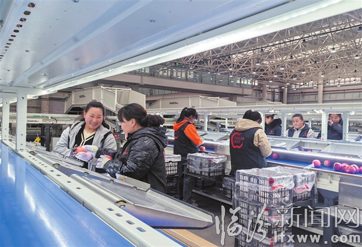 臨汾新聞網訊 3月27日,大寧縣水果供應鏈基地的工作人員正在對“寧脆”蘋果進行分類打包。大寧縣水果供應鏈基地項目占地119.3畝,總建筑面積39374平方米,總投資2.07億元,包括香梨庫、蘋果庫各1座,以及分揀分撥中心、物流分撥中心等。項目建成后,年水果儲藏和加工能力可達6萬噸,成為集智慧倉儲、分揀精選、水果展銷、物流配送、住宿餐飲、電商培訓、網點服務為一體的水果冷鏈物流產業園區。