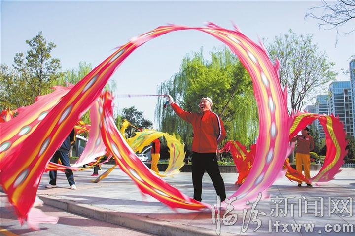 臨汾新聞網訊 4月13日,在市區向陽西路的街頭游園,市民在舞動“健身龍”。春風和煦,陽光明媚,眾多市民來到公園、廣場、綠地,參加各種健身運動,享受健身帶來的快樂。