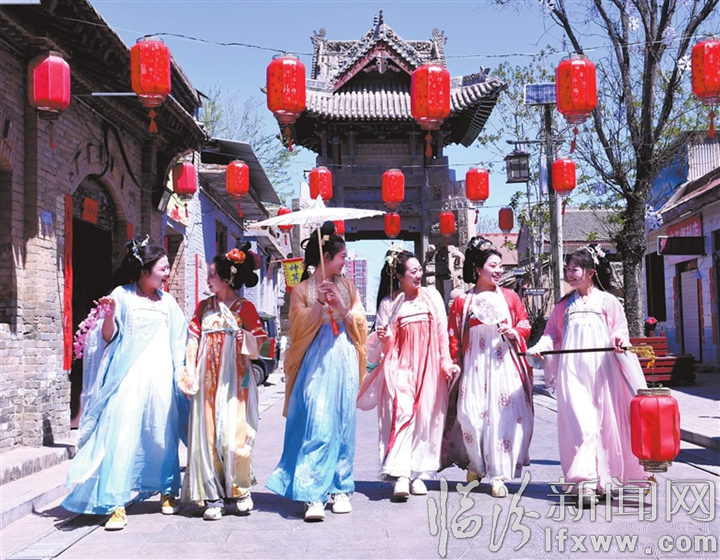 臨汾新聞網訊 近日,翼城縣唐興鎮古城景區內鼓樂喧天、彩綢飛舞,“唐風晉韻 魅力翼城”系列文旅活動暨“春翼盎然 美景來臨”古城第十一屆民俗文化旅游活動拉開帷幕。這場集非遺表演、民俗體驗、文化展覽于一體的文旅盛宴,為游客獻上了一場跨越千年的文化之旅。圖為游客們身穿古裝漫游古城。