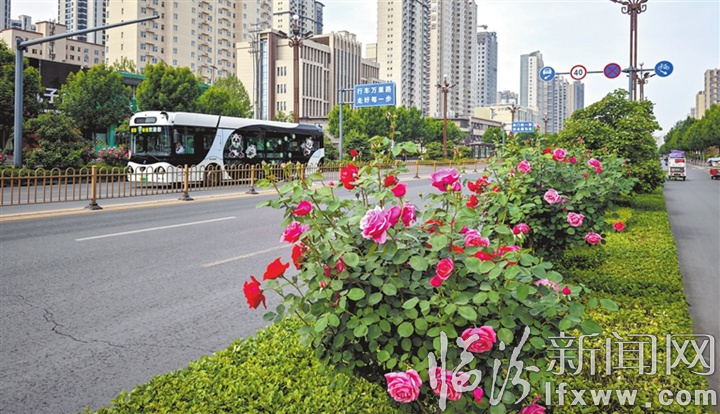 臨汾新聞網訊 4月29日,市區解放東路的月季花競相開放,成為最美的街景。連日來,市區主干街道繁花盛放,步步皆景,各種顏色的月季爭奇斗艷,讓人賞心悅目。一條條花卉景觀路,給人們帶來了一路繽紛的視覺體驗。