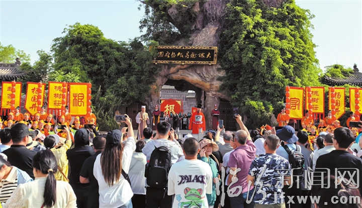 臨汾新聞網訊“五一”假期期間,洪洞大槐樹尋根祭祖園景區精心策劃了以“回家尋根”為主題的系列活動,通過創新傳統文化的呈現方式,為游客提供高品質的文化旅游體驗,讓游客在旅行中沉浸式感受“家文化”的獨特魅力。圖為5月4日,沉浸式演出《開門迎親》現場。