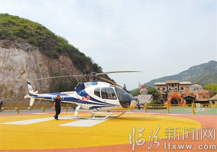 臨汾新聞網訊 5月21日,一名游客在鄉寧云丘山景區停機坪參觀直升飛機。