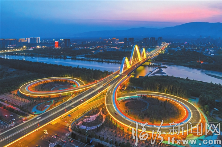 臨汾新聞網(wǎng)訊 7月2日,夜幕低垂,華燈初上,姑射橋披上了迷人的霓裳,熠熠生輝、美輪美奐,宛如鑲嵌在“快速中環(huán)”北段的一顆璀璨明珠,與城市夜景交相輝映,共同構(gòu)成了一幅美麗的畫卷。
