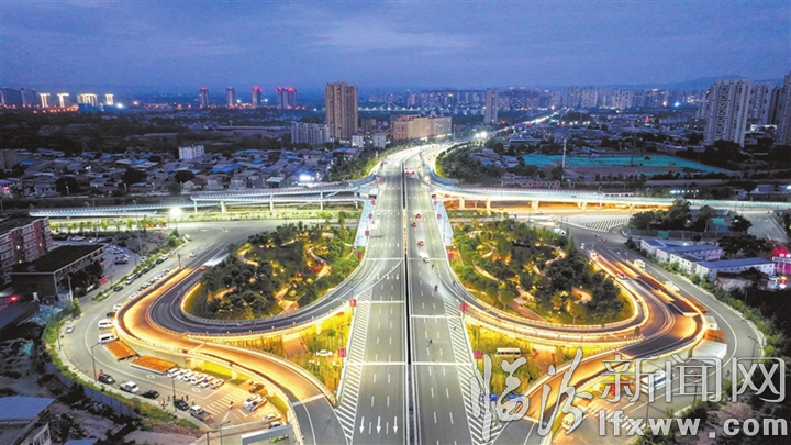 臨汾新聞網(wǎng)訊 8月6日,夜色下的市區(qū)河汾一路跨鐵路橋梁燈光璀璨,美輪美奐,呈現(xiàn)出一幅美麗的畫卷,讓人沉醉在這唯美的氛圍中。