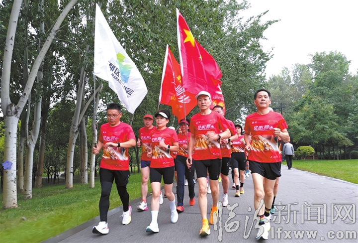 臨汾新聞網訊 10月4日,在市汾河文化生態景區,跑步愛好者們在晨跑。國慶中秋假期,市區公園、健身步道、運動場上健身運動的身影成為最美的風景線,越來越多的市民在運動中享受樂趣、增強體魄。