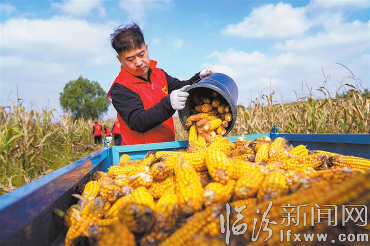 左圖:10月16日,浮山縣紀委監委干部職工幫助村民搶收玉米。