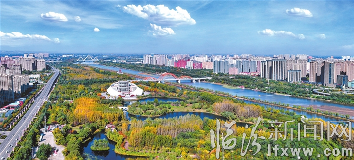 臨汾新聞網(wǎng)訊 深秋時(shí)節(jié),汾河文化生態(tài)景區(qū)層林盡染,整個(gè)公園變得色彩斑斕,與城市交相輝映,共同構(gòu)成一幅色彩濃郁、詩(shī)意盎然的生態(tài)畫(huà)卷。圖為10月31日拍攝的汾河兩岸風(fēng)景。