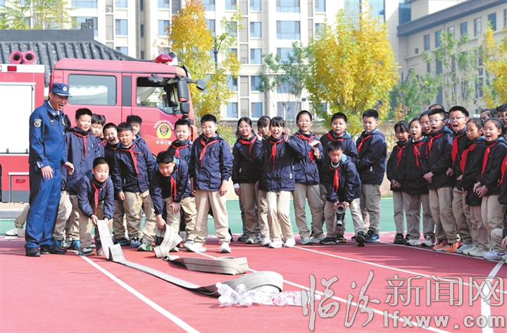臨汾新聞網訊 11月4日,在臨汾一中第一附屬學校消防體育課上,學生們進行“水帶保齡球”比賽。全國消防宣傳月期間,堯都區消防救援大隊20名校外輔導員走進中小學校園,開展多種形式消防安全教育活動,提升學生消防安全素養和自防自救能力。