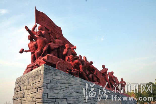 11月15日,一座長(zhǎng)15米、高10米、寬4米的大型雕塑在曲沃縣澮河北岸落成。上世紀(jì)50年代,5萬(wàn)晉南兒女依靠雙手,攻堅(jiān)克難,戰(zhàn)天斗地,建成庫(kù)容1億立方米,干渠150余公里的澮河水庫(kù)。這組以“澮河魂”命名的雕塑群,用19位挑擔(dān)、送水、打夯、拉飛車的典型人物再現(xiàn)了當(dāng)時(shí)壯觀的勞動(dòng)場(chǎng)景。劉紅兵 攝