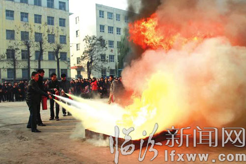 11月20日,堯都區公安消防大隊消防干警、車站街派出所的民警一起與臨汾八中的師生進行了一場消防安全演練。