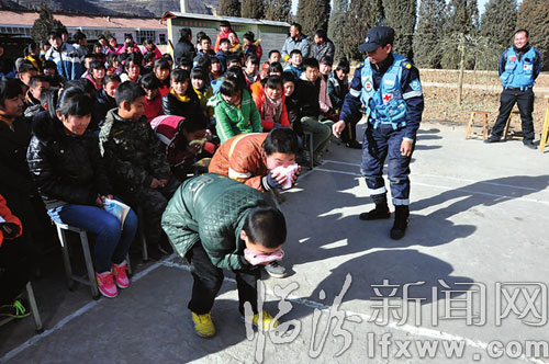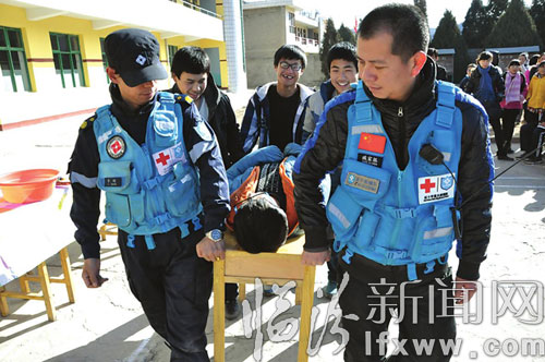 如果正在上課,碰到地震、碰到火災該如何迅速安全撤離到安全地帶?如何第一時間對受傷的同學進行搬運?掌握一些技能在關鍵時候不僅能自救,而且還能幫助更多人脫離危險。為了進一步抓好學校的安全管理工作,切實增強全體師生的安全防范意識,掌握在災害中迅速逃生、自救、互救的基本方法,提高抵御災害和應對緊急突發事件的能力,12月11日,臨汾藍天救援隊的隊員們來到吉縣桑峨中學,對師生們進行了地震逃生及消防應急知識培訓。